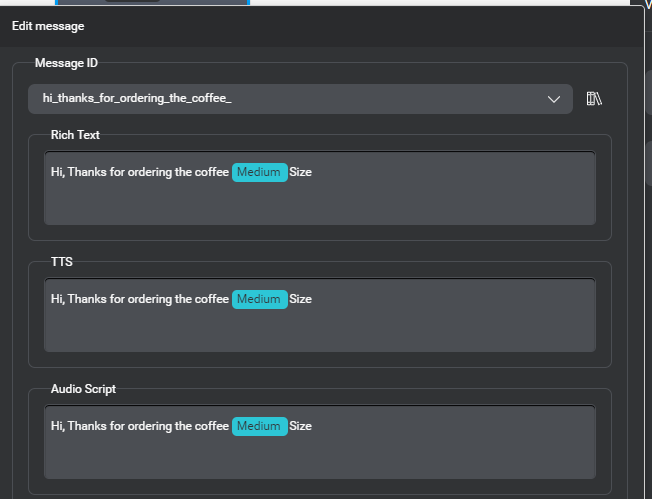Repeat the same for TTS and Audi script. You can see below the Medium is now highlighted in different color as it will now display the user selected option.